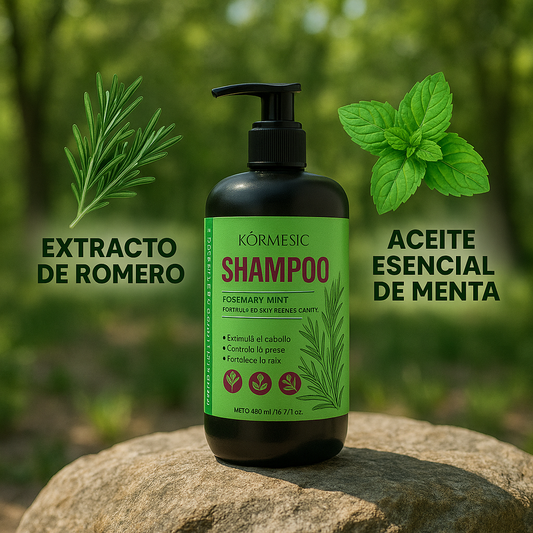 Shampoo Romero Mentolado KORMESIC ¡Activa el crecimiento, frena la caída y refresca tu cuero cabelludo!