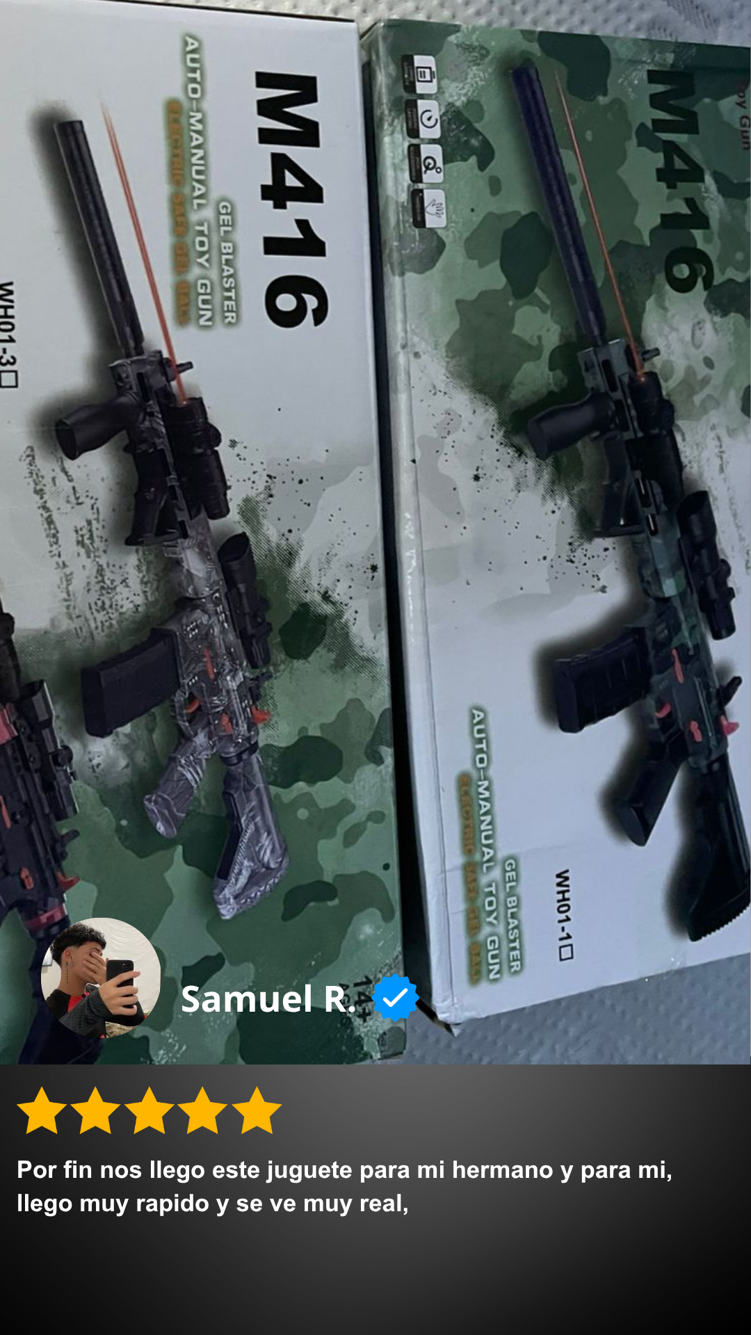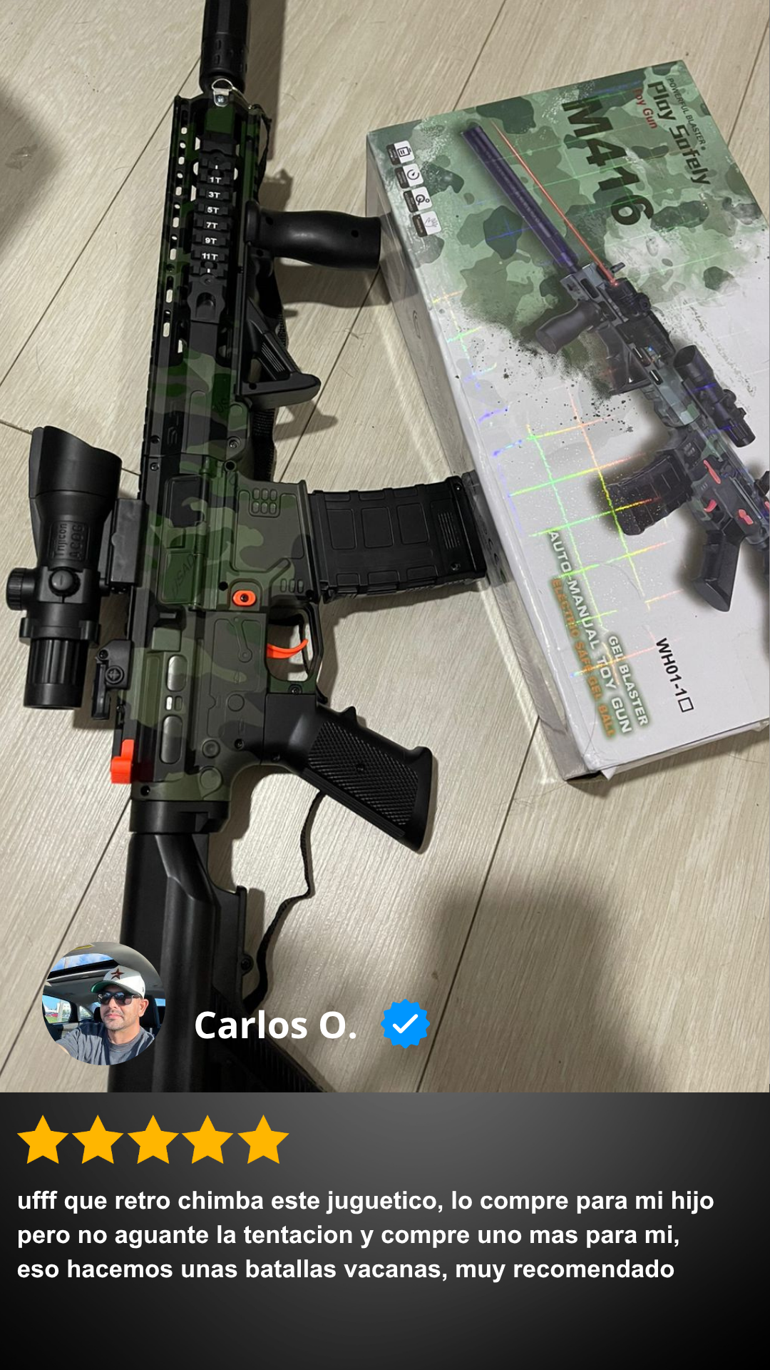 El M416 usa bolitas de hidrogel biodegradables que se deshacen al contacto, no manchan, no duelen y no representan riesgo.
